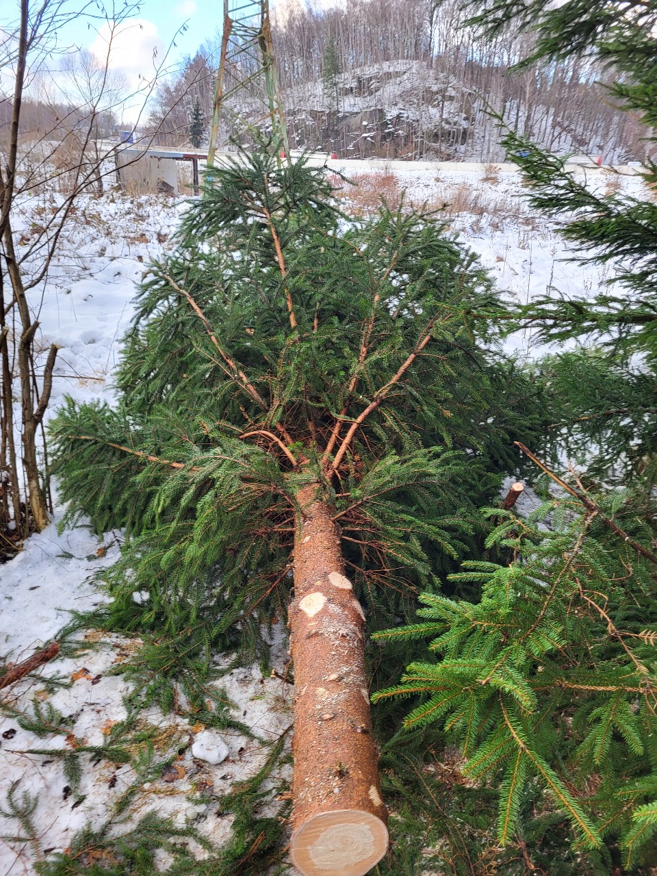 Tak strom už leží. Teď potřebujeme pár chlapů, abychom ho v sobotu 29. 11. dokázali přetáhnout na cestu před dům Vojty Zikmunda (Machnín 23). Sraz bude v 9.00 u pošty, kdo se chystáte, potvrďte účast, prosím. Třeba na mobil - 777 787 021. Jirka Marek přislíbil pomoc, ale s traktorem se nedá až ke stromu zajet. Je tam trochu mokro, tak to není na nízké boty...